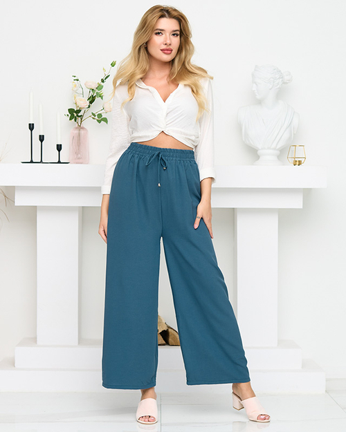 Tyrkysové dámské široké palazzo- Oblečení