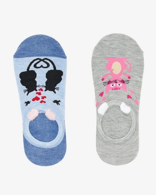 Námořnicky modré a šedé dámské ponožky s potiskem koťat 2 / bal - Spodní prádlo