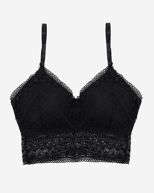 - Jemná dámská podprsenka typu bralette, zdobená výraznou a jemnou krajkou. Model je bez zapínání, má měkké košíčky a nastavitelná ramínka. POZNÁMKA: Přesnost měření (+/-) 1 cm.