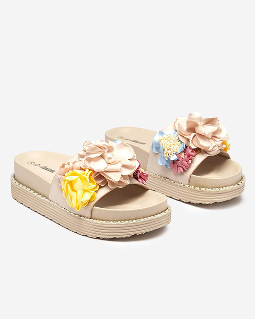 Dámské pantofle s látkovými květy v béžové Kaffga - Obuv
