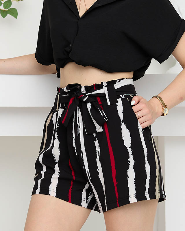 - Velmi pohodlné a elegantní šortky z měkké, příjemné látky. Model s gumičkou a přídavným páskem v pase. Zdobí je pruhovaný vzor! POZNÁMKA: přesnost měření (+/-) 1 cm. Rozměry měřeny naplocho.