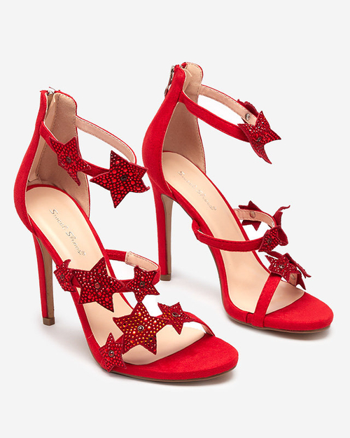 Červené dámské sandály na vysokém podpatku s hvězdami Stareli - Obuv