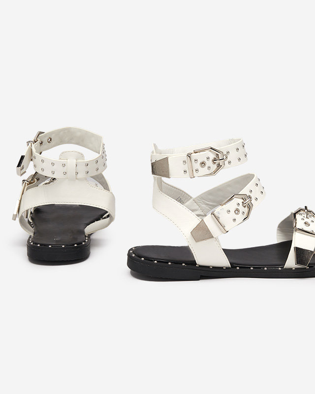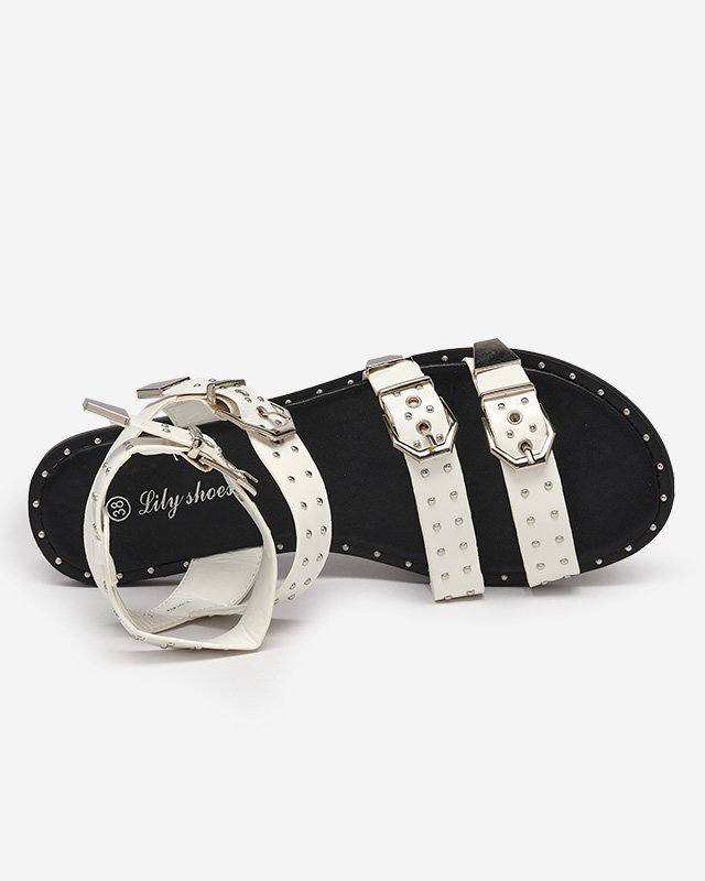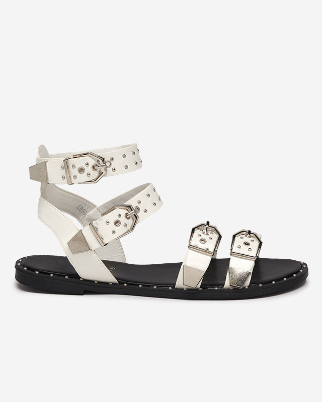 - Nádherné a originální dámské sandály vyrobené z eko kůže. Obuv se zapíná na přezku u kotníku. Stříbrné trysky jim dodávají kouzlo – skvělé na léto!
