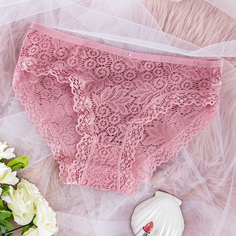 Tmavě růžové jednobarevné krajkové kalhotky pro ženy - Spodní prádlo