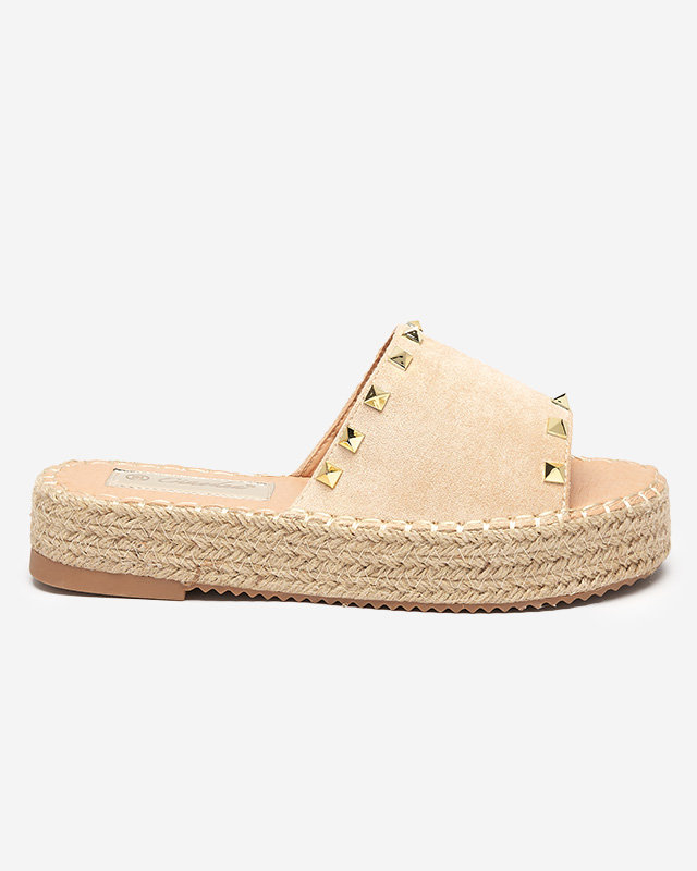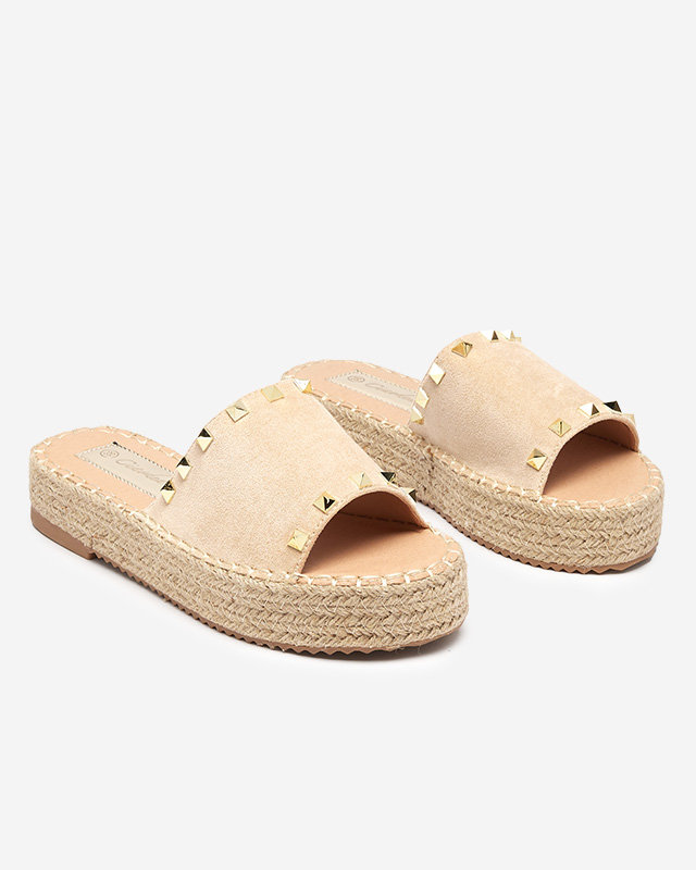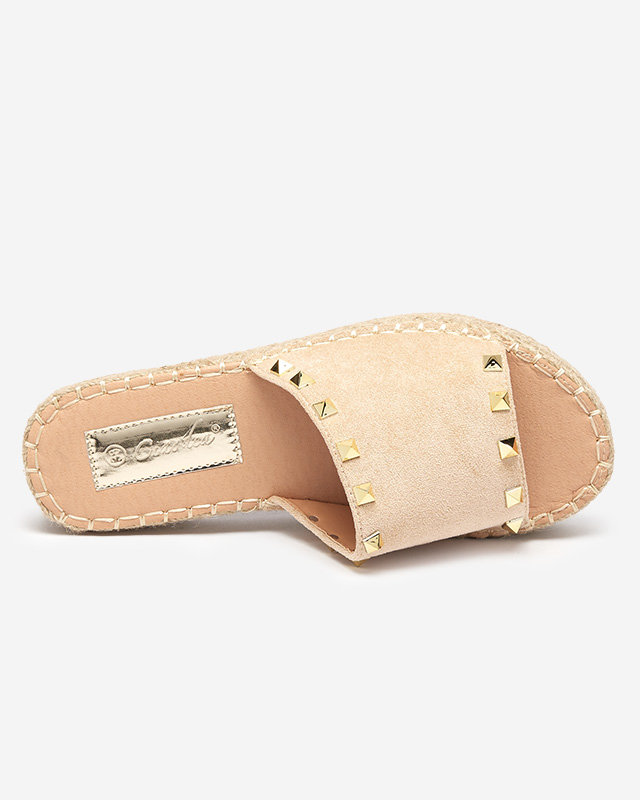 Béžové eko semišové dámské sandály s cvočky Kanise - Boty
