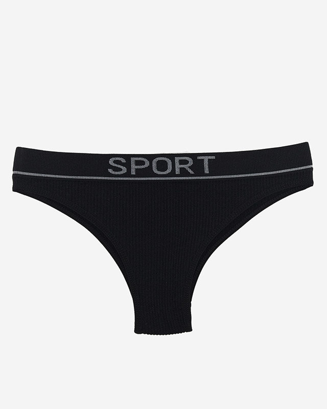 Dámské černé žebrované kalhotky se sportovními nápisy - Spodní prádlo