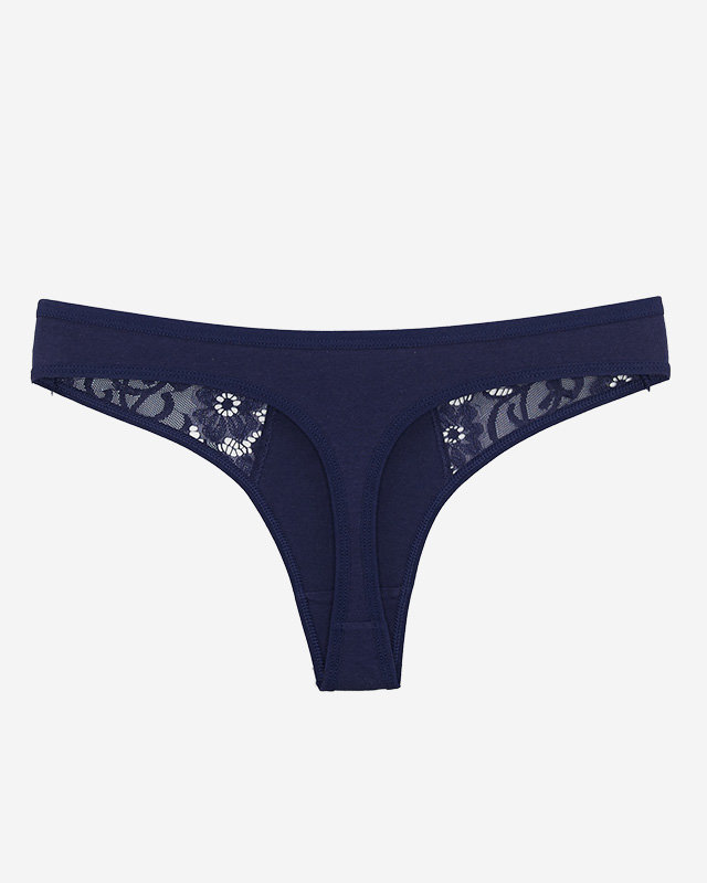 Dámská tmavě modrá bavlněná tanga s ozdobnou krajkou - Spodní prádlo