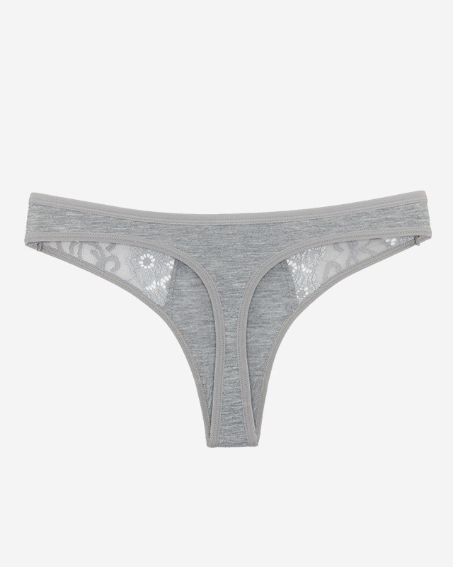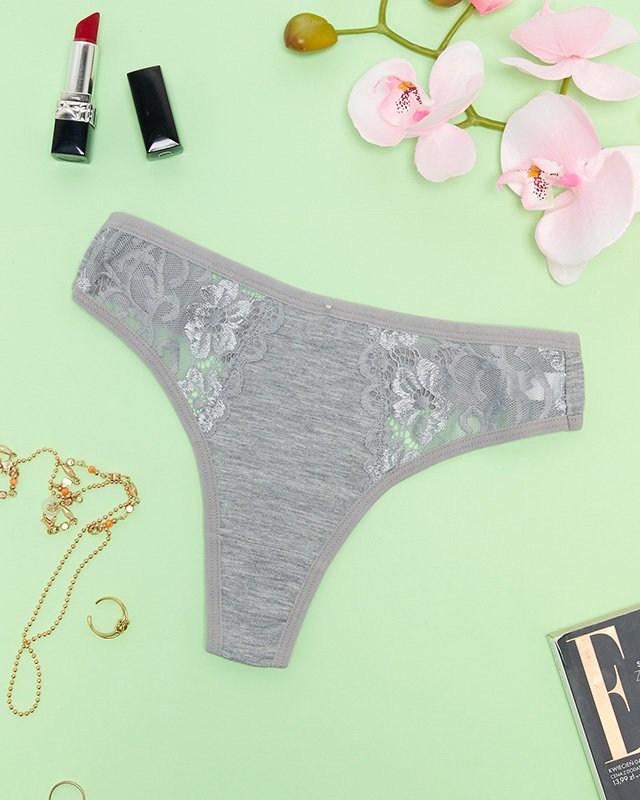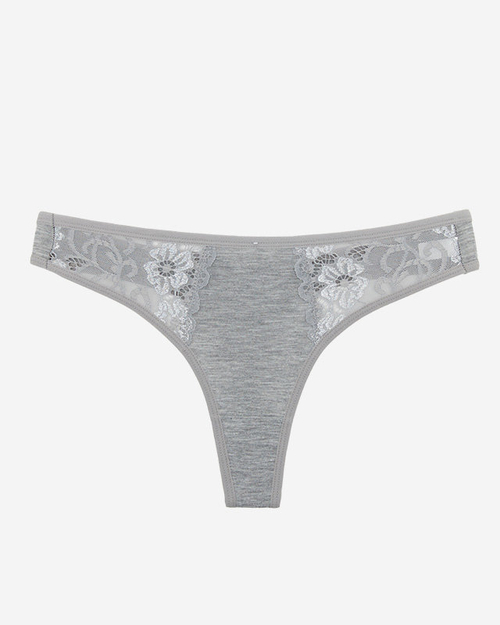 Šedá bavlněná dámská tanga s ozdobnou krajkou - Spodní prádlo