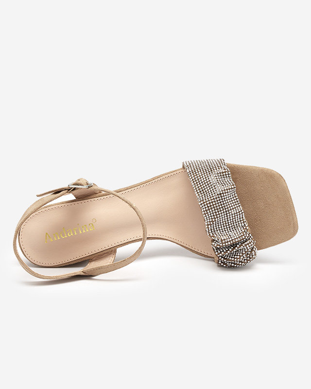 Světle hnědé dámské sandály na sloupku s kubickými zirkony Trieste - Obuv