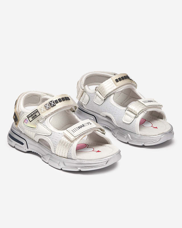 Bílé a stříbrné dětské sandály na suchý zip Mepoti - Obuv