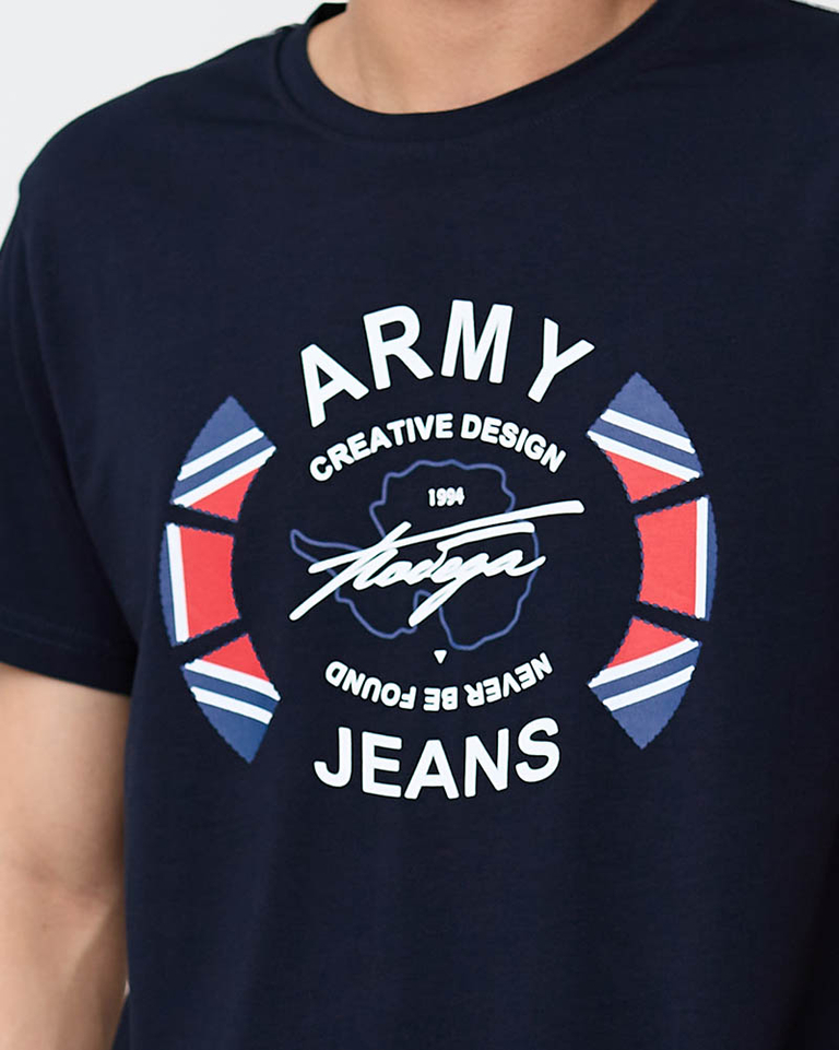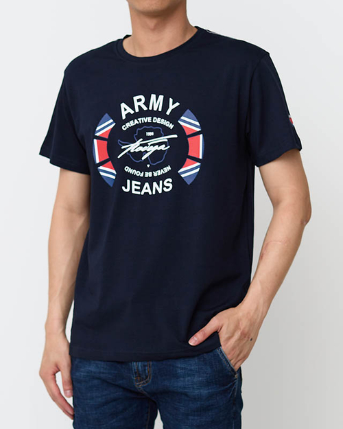 Tmavě modré pánské tričko s potiskem - Oblečení