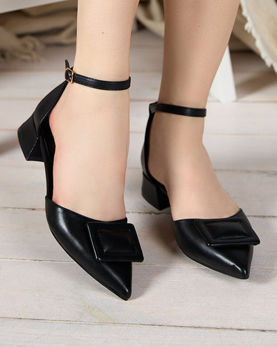 - Krásné dámské lodičky na plochém podpatku - kombinace klasiky a elegance s pohodlím! Pár je vyroben z ekologické kůže. Zúžený nos opticky zeštíhluje nohy. Kolem kotníku pásek zapínaný na přezku.