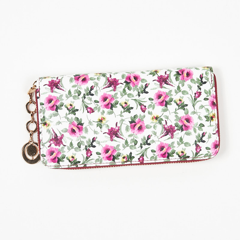 Velká bílá dámská peněženka s růžovým květinovým vzorem - Doplňky