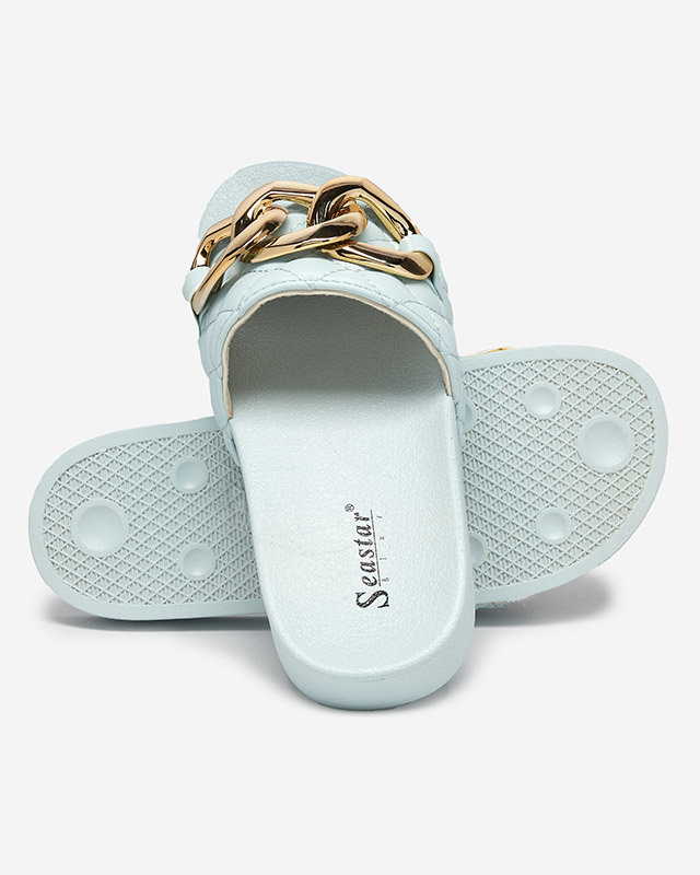 OUTLET Modré dámské prošívané pantofle se zlatým řetízkem Eteris - Obuv