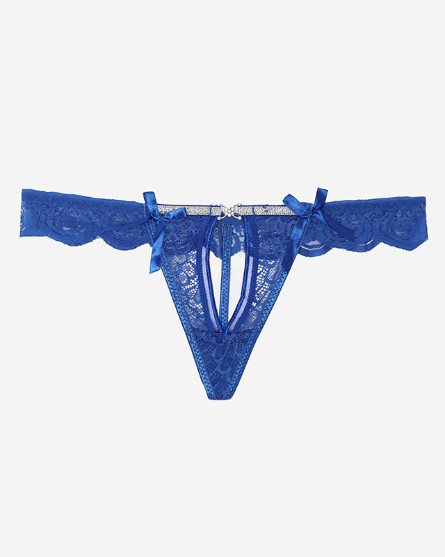Dámská tmavě modrá krajková tanga s ornamenty - Spodní prádlo