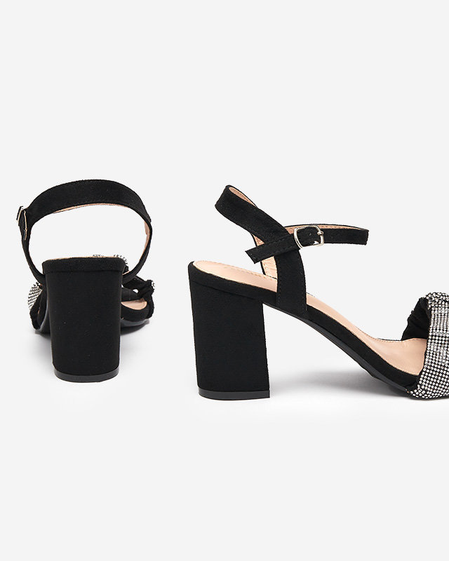 OUTLET Černé dámské sandály na sloupku s kubickými zirkony Trieste - Obuv