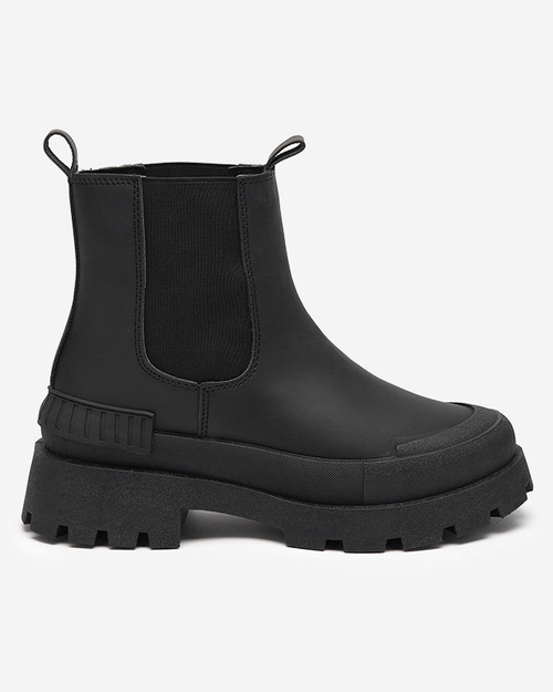 - Dámské nazouváky vyrobené z ekologické kůže. Kozačky se silnější podrážkou, kulatou špičkou a elastickými vsadkami na bocích. Budou dokonalým doplňkem kabátu! DÁMSKÉ ČERNÉ BOTY NEVODENÉ EKO KOŽE SISEPI