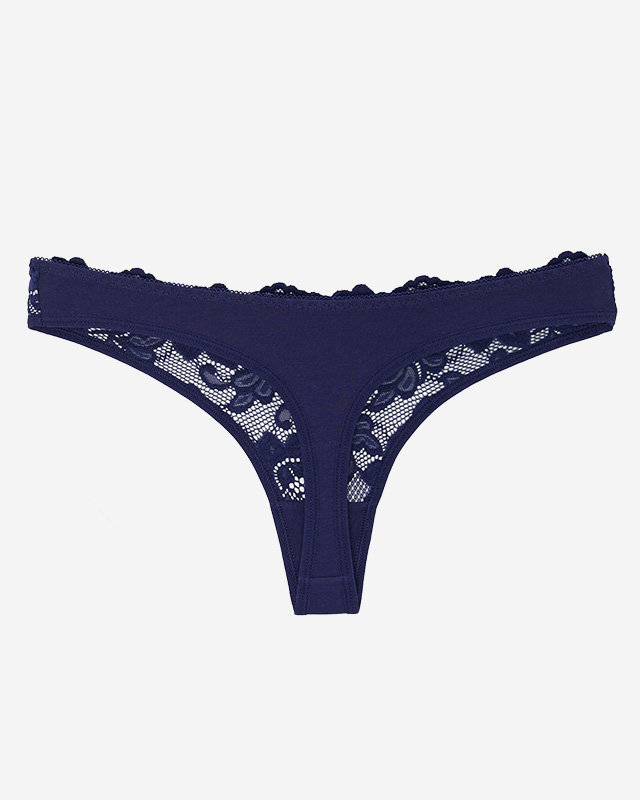 Dámské tmavě modré tanga kalhotky s krajkou - Spodní prádlo