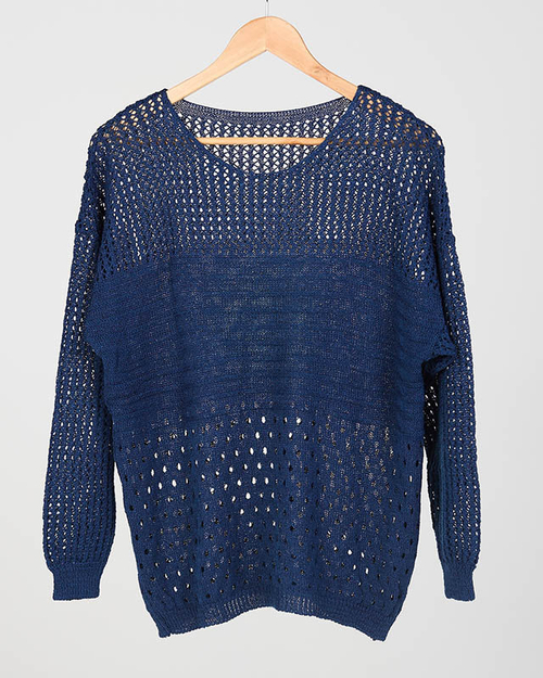 Dámský tmavě modrý prolamovaný svetr - Oblečení