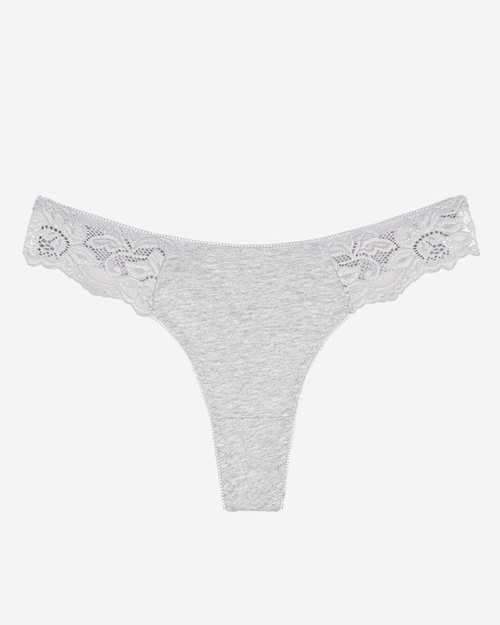 Šedé bavlněné dámské tanga kalhotky s krajkou - Spodní prádlo