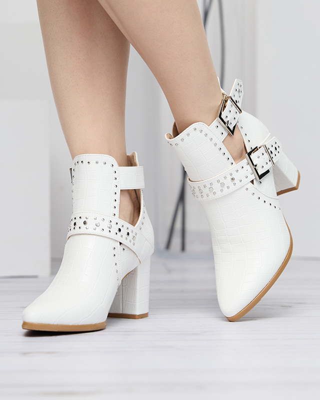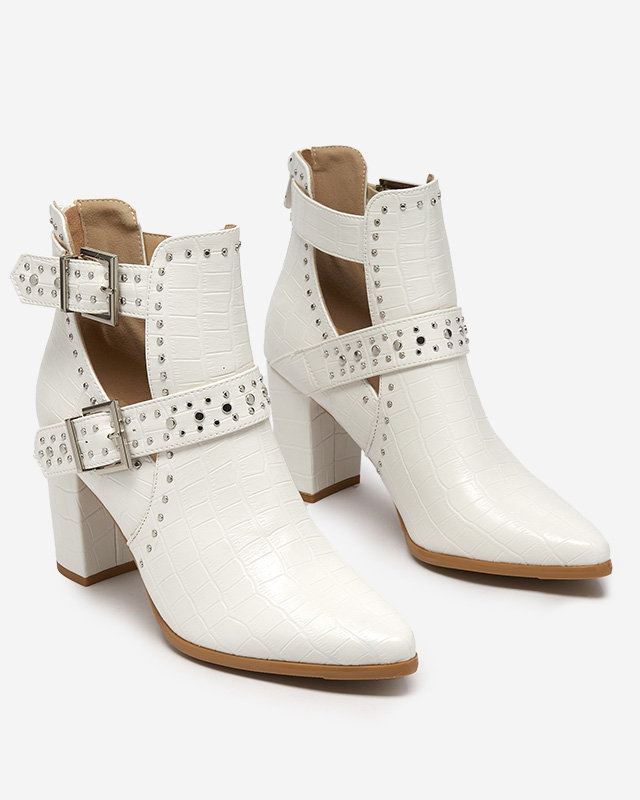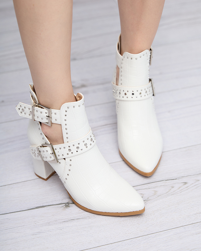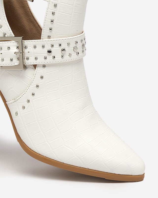 Bílé holínky na sloupku s výřezy a přezkami Masieo - Obuv