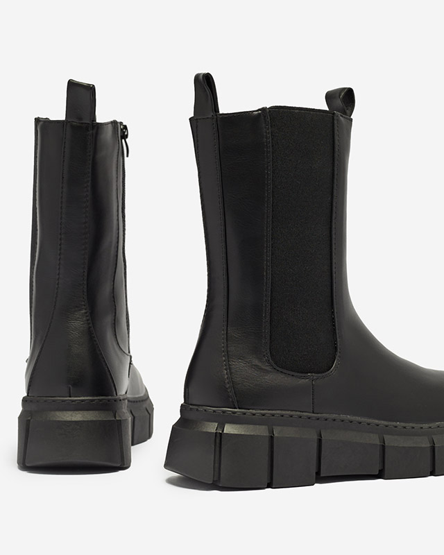 - Stylové dámské kozačky z ekologické kůže. Boty se zapínají na zip, mají elastickou vsadku na boku, gumovou platformu a jemnou izolaci uprostřed. ČERNÉ DÁMSKÉ BOTY COUELL BOTY