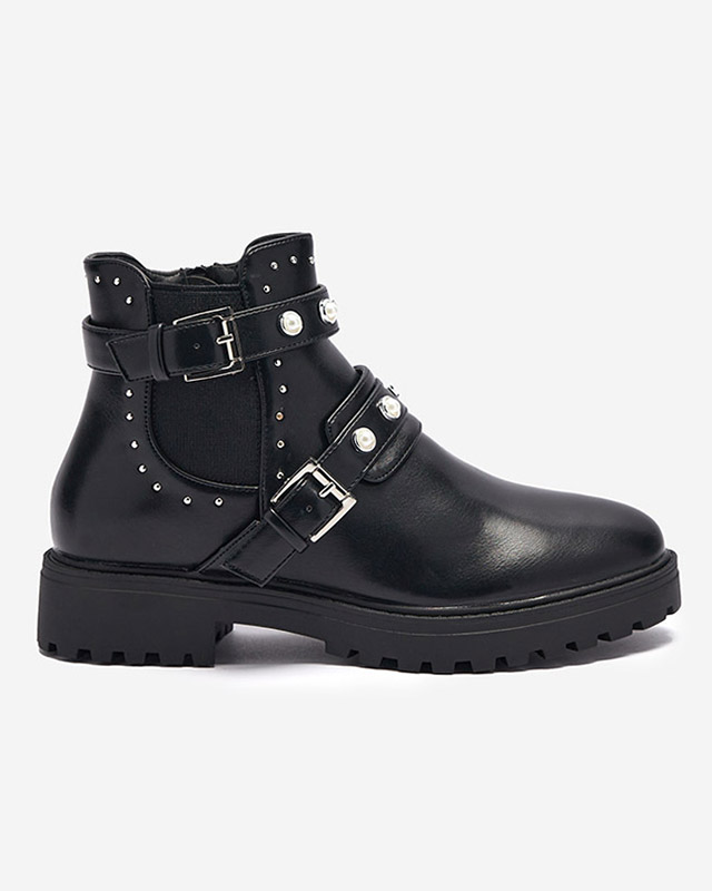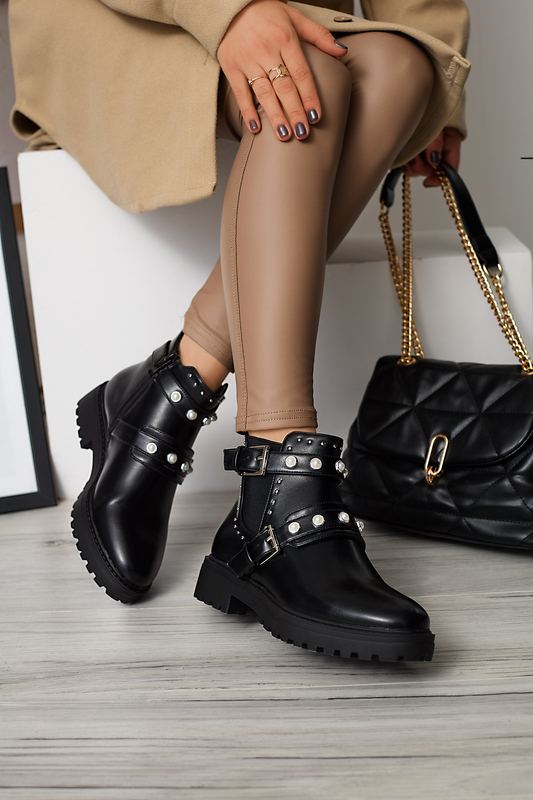 Dámské kotníkové boty z eko kůže s perličkami v černé barvě Saalo- Footwear