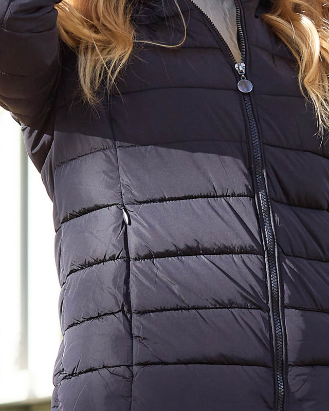 Námořnicky modrá dámská prošívaná bunda s kapucí a kožešinou- Oblečení