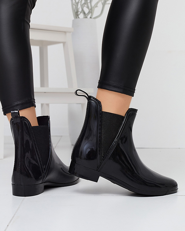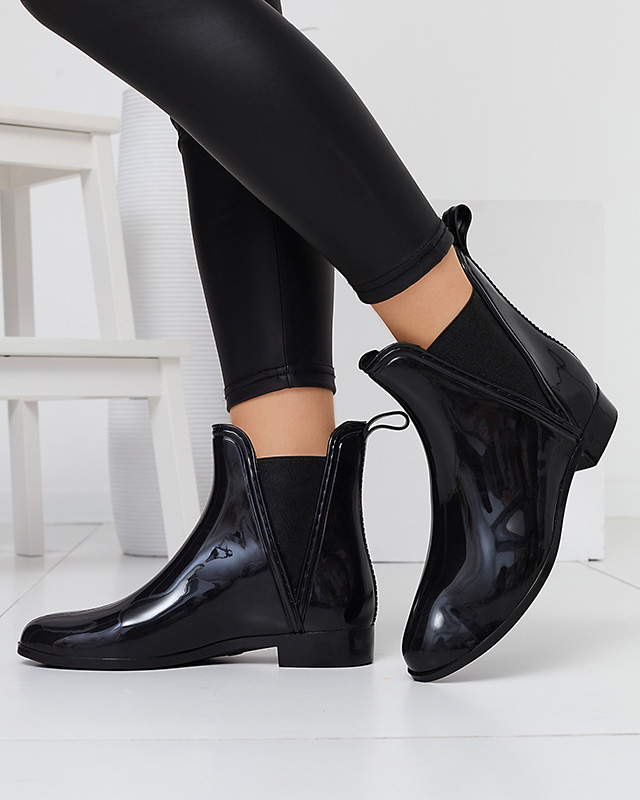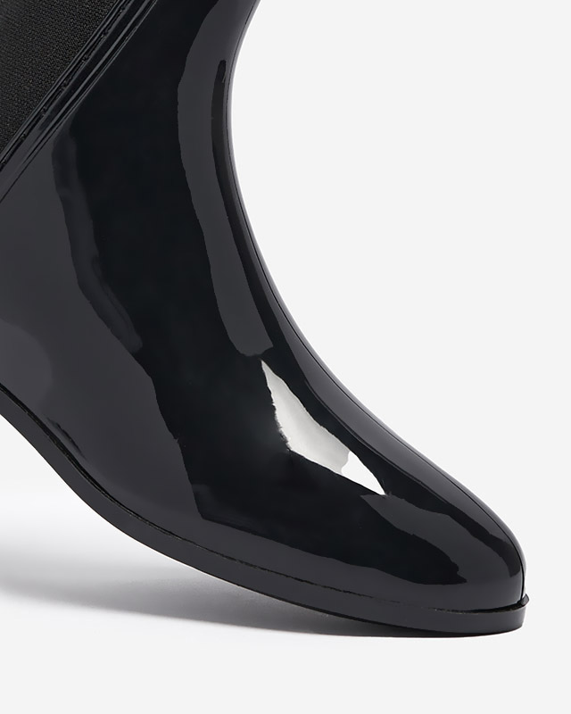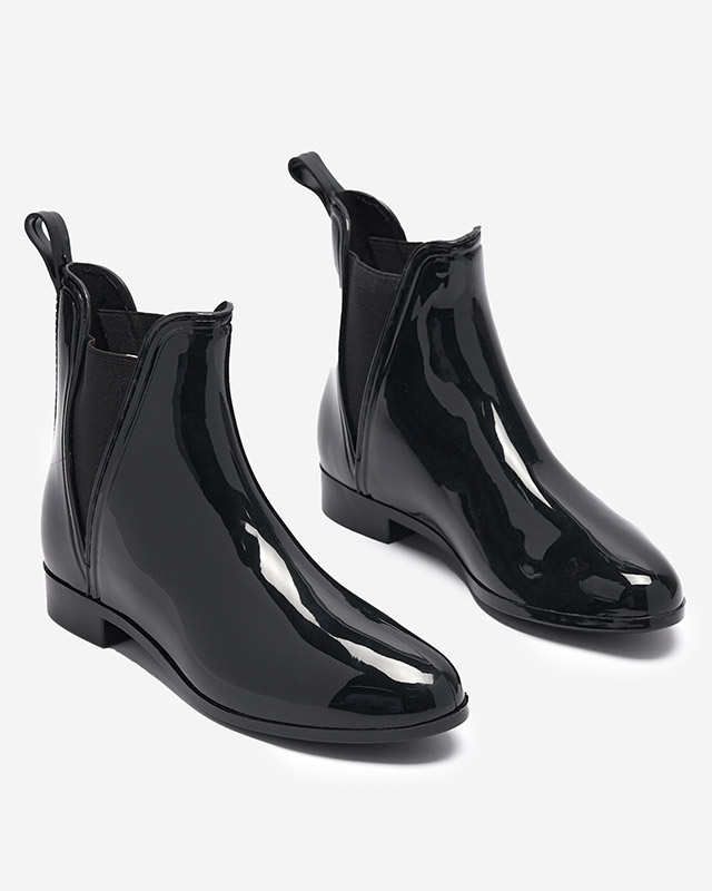 - Klasické dámské polobotky z gumového materiálu s lakovanou úpravou. Stélka je z textilního materiálu. Obuv ideální pro podzimní deštivé dny!