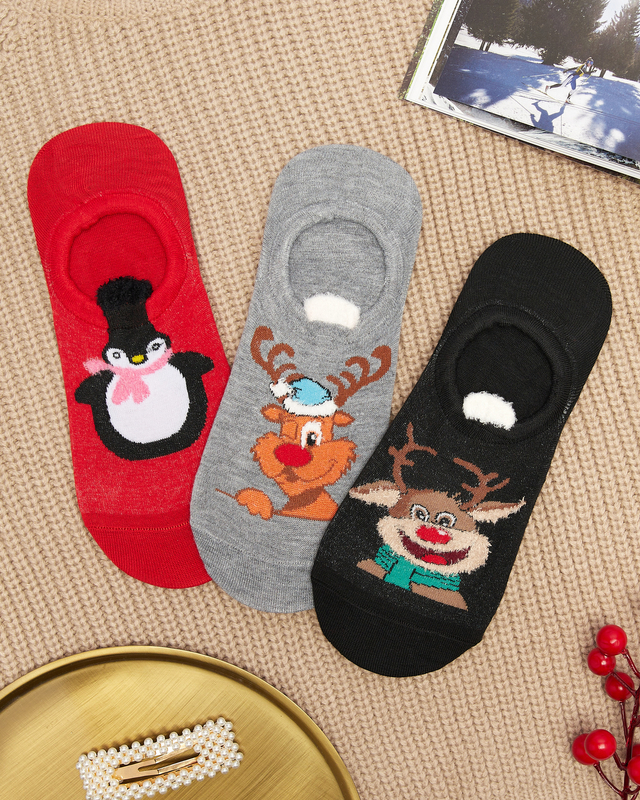 - Barevný dámský vánoční mix 3 párů ponožek, vyrobený z bavlněného materiálu. Model s rozkošnými motivy se zvířátky a Santa Clausem - ideální nápad na vánoční dárek!