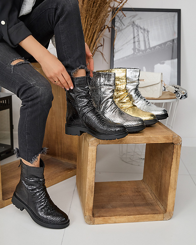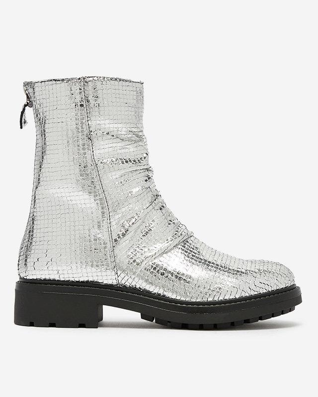 OUTLET Stříbrné dámské kozačky s ražbou Ahhy- Obuv