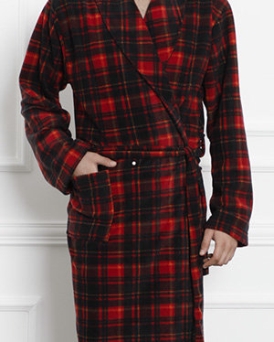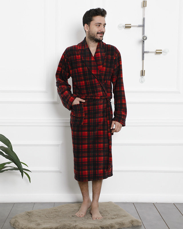 Červeno-černý kostkovaný pánský župan - Oblečení