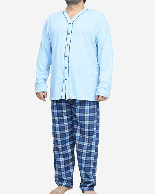 Modré pánské pyžamo se zapínáním na knoflíky- Oblečení