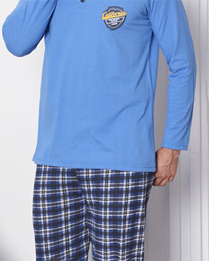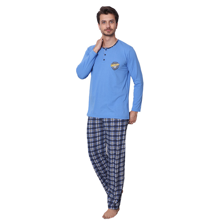 Modré pánské pyžamo s kostkovanými kalhotami - Oblečení