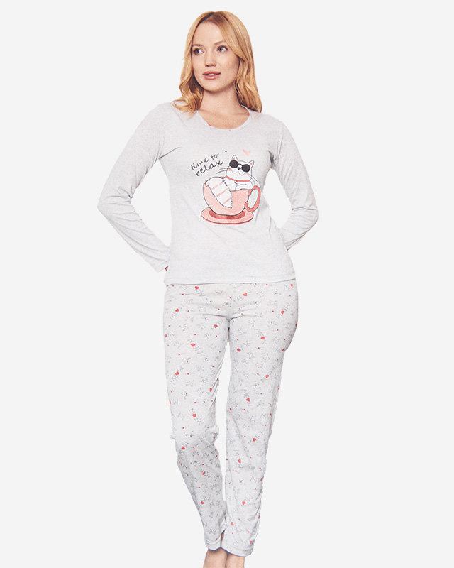 Světle šedé dámské dvoudílné pyžamo s potiskem - Oblečení