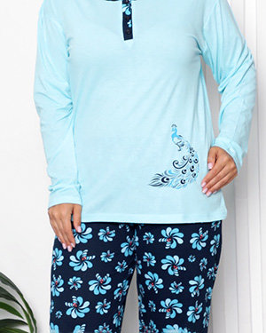 - Dámské dvoudílné pyžamo s dlouhými rukávy a dlouhými nohavicemi z bavlněného materiálu. Model zdobí květinový potisk. Ideální na domácí večery! POZNÁMKA: Přesnost měření (+/-) 1 cm.