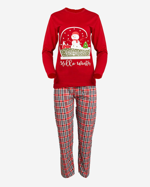 Červené dámské dvoudílné pyžamo se sněhulákem- Oblečení