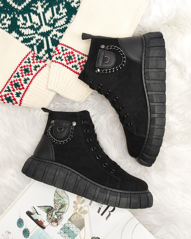• Stylové dámské boty na masivní platformě, vyrobené z ekokůže. Model je šněrovací, uprostřed je podšitý látkou. Svršek má na vnější straně boty ozdoby. Ideální pár pro každodenní nošení! ČERNÉ NEZATEPLENÉ BOTY TAMTI
