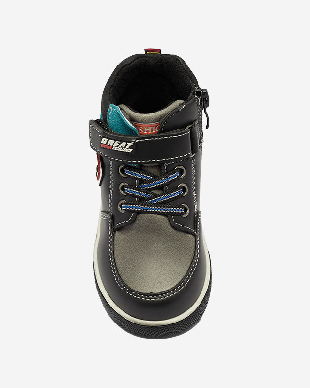 - Stylové chlapecké boty na ploché podrážce se zapínáním na zip a suchý zip, vyrobené z ekologické kůže. Střed boty je podšitý látkou. Ideální na podzim! ČERNÉ ZIMNÍ BOTY DĚTSKÉ BOTY WIASIO