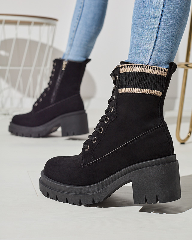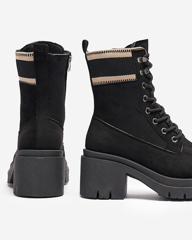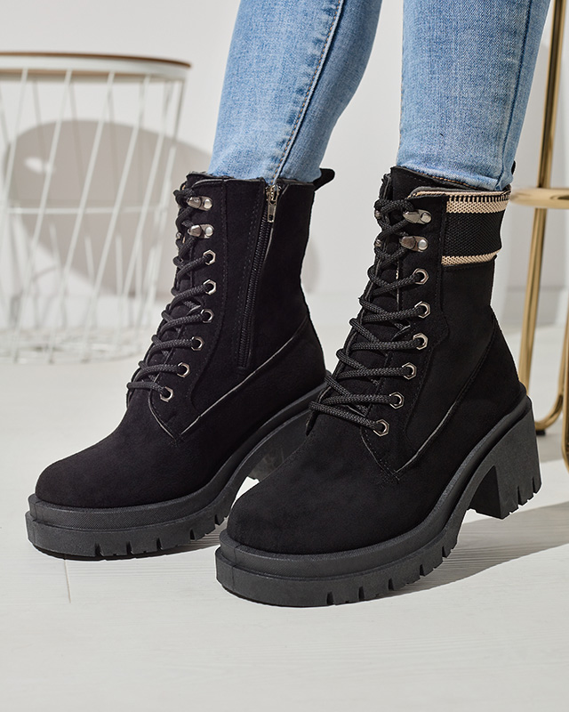 - Jemně zateplené traperské boty na jehle, vyrobené ze semišové ekologické kůže. Vnitřní strana je podšitá měkkou kožešinou. Model se zapíná na zip, navíc je vybaven tkaničkami. ČERNÉ ZATEPLENÉ TRAPERSKÉ BOTY KOIDOO