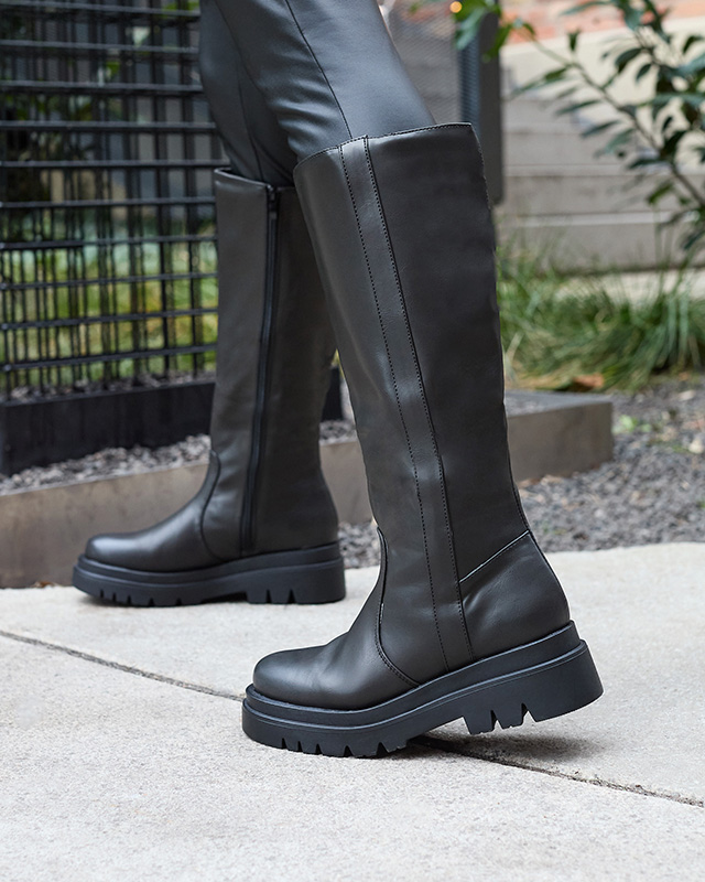 Černé dámské nadkolenky z ekokůže Roterika - Obuv