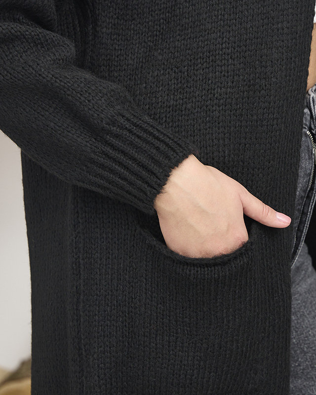 Dámský dlouhý svetr s přehozem v černé barvě- Oblečení