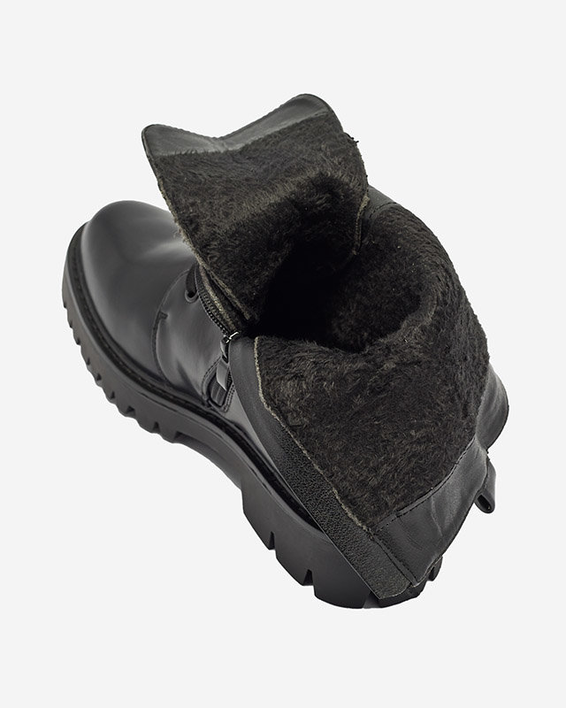 - Dámské boty na plochém podpatku z eko kůže. Model má zateplený plastový vnitřek. Svršek zdobí perly, model se šněruje a zapíná na zip. Poznámka: výrobek má na materiálu stopy lepidla.
