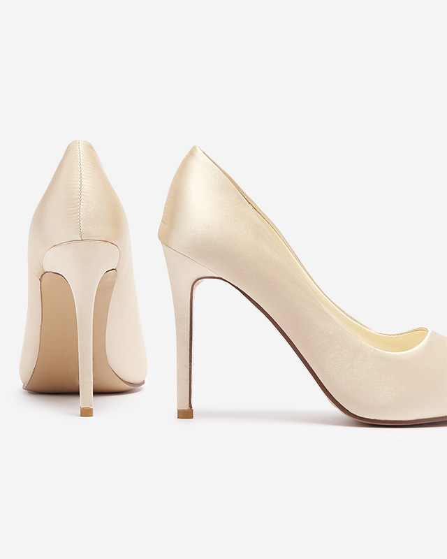 Béžové dámské saténové lodičky na vyšším podpatku Norija - Obuv