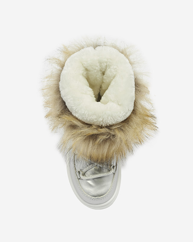Stříbrné dětské nazouvací boty a'la snow boots s kožíškem Asika - Obuv