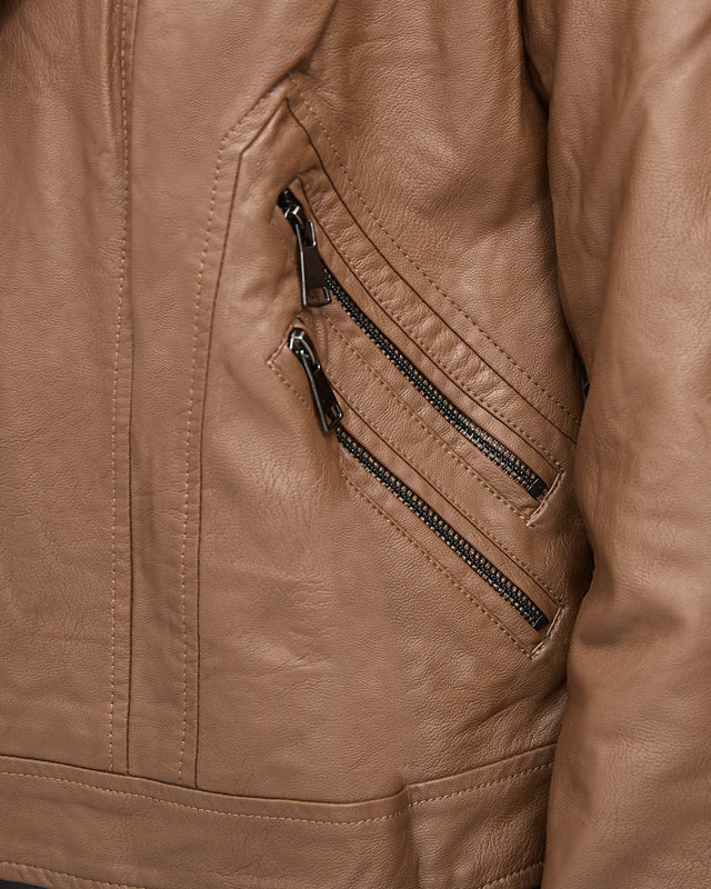 Dámská bunda z ekokůže ramoneska v hnědé barvě- Oblečení