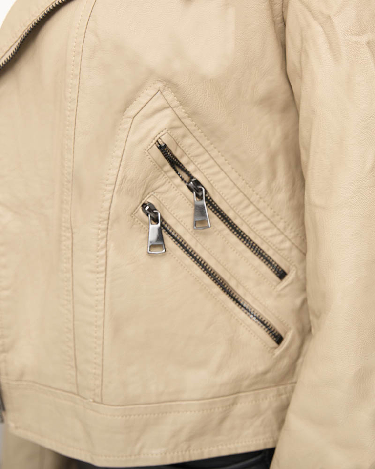 Dámská bunda ramon z ekokůže v béžové barvě- Oblečení