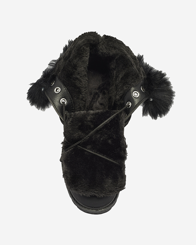 - Klasické dámské zimní kozačky trapper se šněrováním. Svršek je vyroben z ekologické kůže s matnou úpravou, uprostřed je zateplený měkkým kožíškem. Pár je zdoben kožešinou ve sladěné barvě. ČERNÉ ZATEPLENÉ DÁMSKÉ TRAPERKY LAUSA