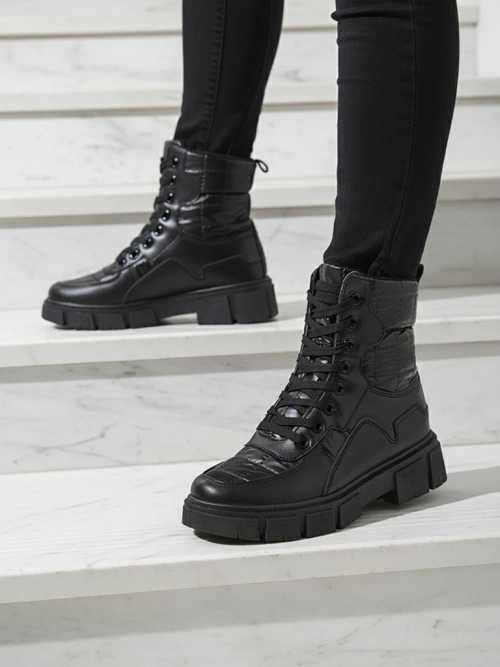 - Vynikající dámské šněrovací boty a'la workery. Svršek je vyroben z kombinace ekologické kůže a umělého materiálu a'la plachta s prošívanou úpravou. Vnitřek je vystlán látkou. ČERNÉ NEZATEPLENÉ BOTY TRAPERY QERTERA