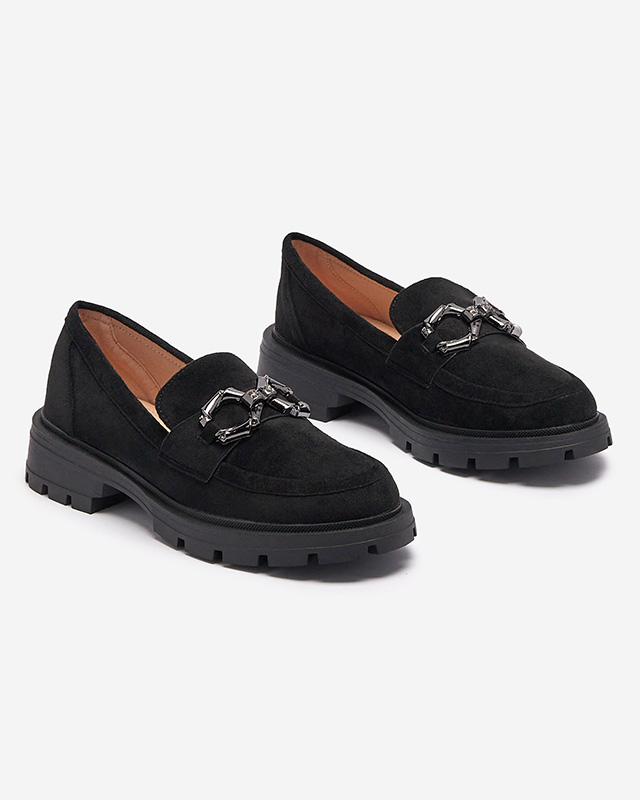 Černé dámské mokasíny z eko semiše s ornamentem Ihetri- Obuv